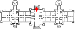 This is a view from the back entrance of the building showing the dual staircases and the main entrance.