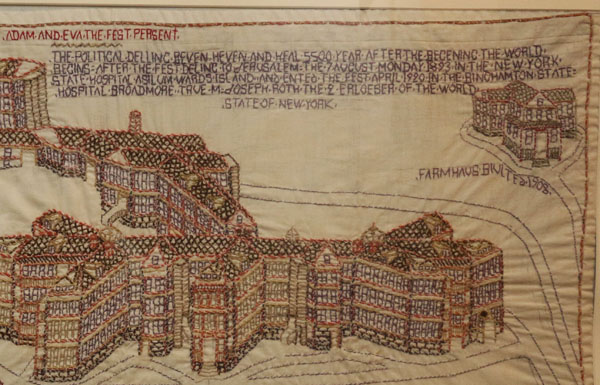 References in the images to Joseph Roth seem to indicate that this was either the name of the artist or a name he chose to be identified with. The artist appears to be German and was likely a patient at Manhattan State Hospital at Ward’s Island in New York City prior to his transfer to Broadmoor Hall at Binghamton State Hospital. The pieces are from the collection of the Broome County Historical Society