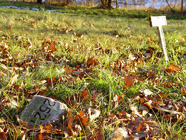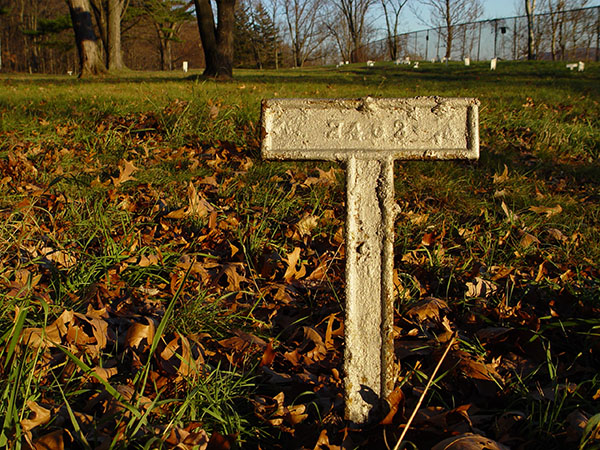 | Soon after Binghamton State Hospital opened in 1881, a cemetery was established at the northeast corner of the campus, for deceased patients with no family or other means for burial. Cast iron grave markers were used initially to indicate only a sequential burial number. In total there were more than 4,000 burials. |
