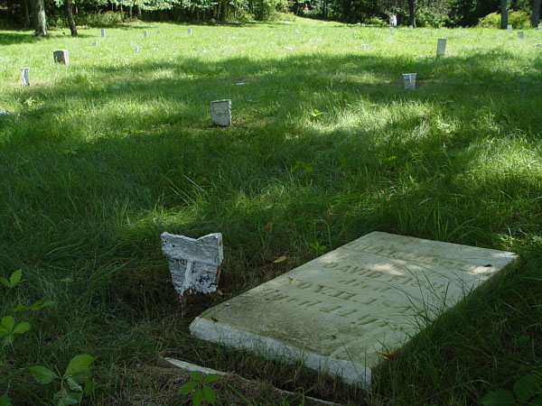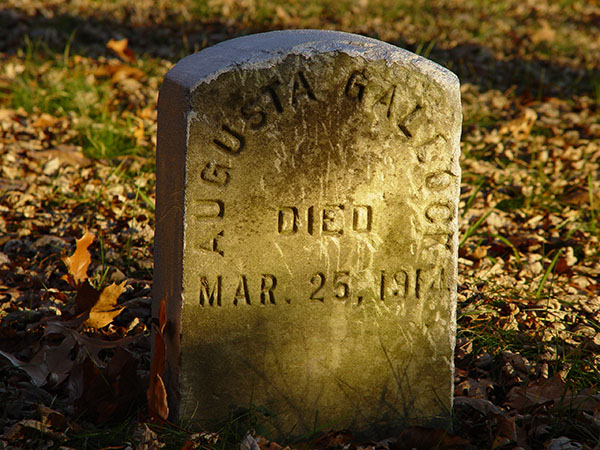 | There are ten headstones in the original cemetery and two in the upper cemetery engraved with names and dates, likely placed by family members at a later date. One of the stones pre-dates the State Hospital. |
